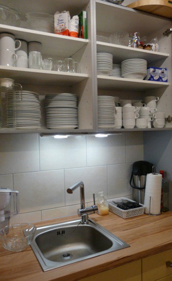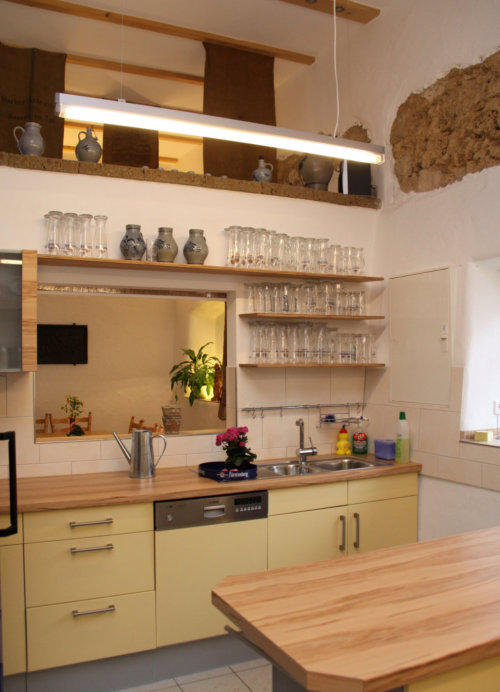 Der Aufenthaltsraum hat einen direkten Zugang zur Küche.